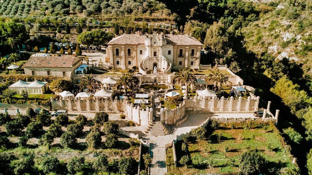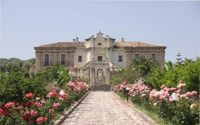 È una grande villa settecentesca a forma di “U” ed è considerata uno dei più significativi esempi di arte barocca in Calabria progettata sicuramente negli ambienti napoletani, dove era factotum la figura del Vanvitelli. Immersa in un verde splendente attorniata da alberi di ulivo, circondata da giardini, e fontane e riesce a cogliere immediatamente l’attenzione del visitatore per l’armonia delle soluzioni architettoniche adottate in ogni parte del complesso. Tipiche appunto dello stile Vanvitelliano che lasciò alla nostra Calabria gioielli di elevato valore architettonico. Un viale apre le porte della monumentale villa, la quale a primo acchito ragguaglia le fattezze di Carditello. dominata da una monumentale scala in pietra, esterna, che sale dai due lati. Attraversando il bel giardino che incornicia la casa, conduce all’ingresso reso importante da una scala in pietra che sale da due lati e da una fontana sormontata da un gruppo marmoreo in cui si distingue Tancredi che soccorre Clorinda. Tuttavia non è la sola fontana posizionata nel complesso, ne esiste una più sobria di marmo bianco con tazza poligonale di base e due tazze più piccole circolari. La terza fontana, quella dei delfini, separa la struttura dalla piscina. Il motivo dell’acqua che indicando abbondanza rispecchia la salubrità del posto ove Villa Caristo fu edificata.